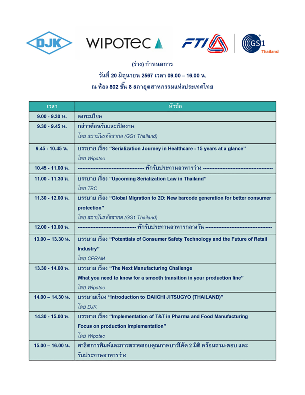◆Venue: Federation of Thai Industries, 8th floor, Room 802